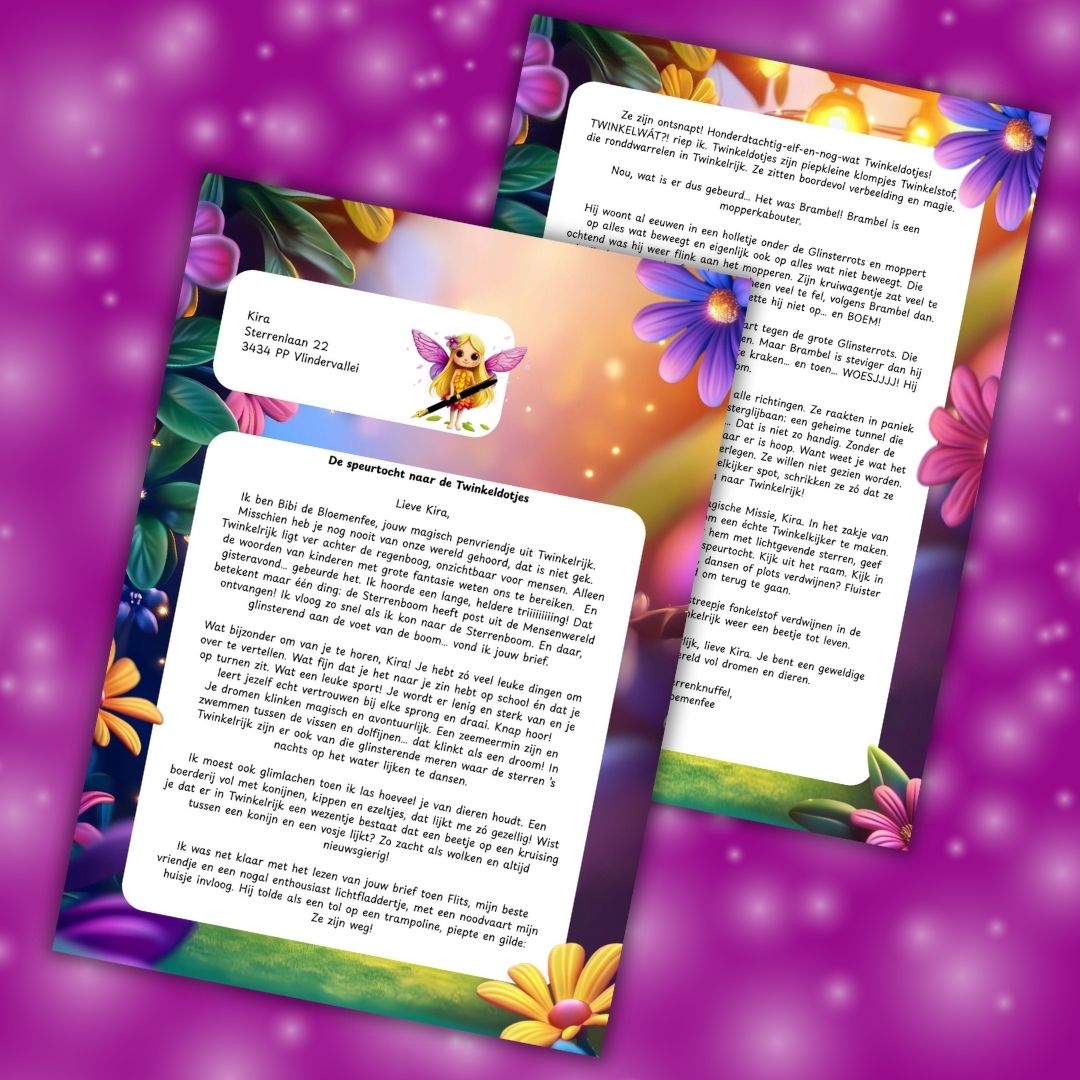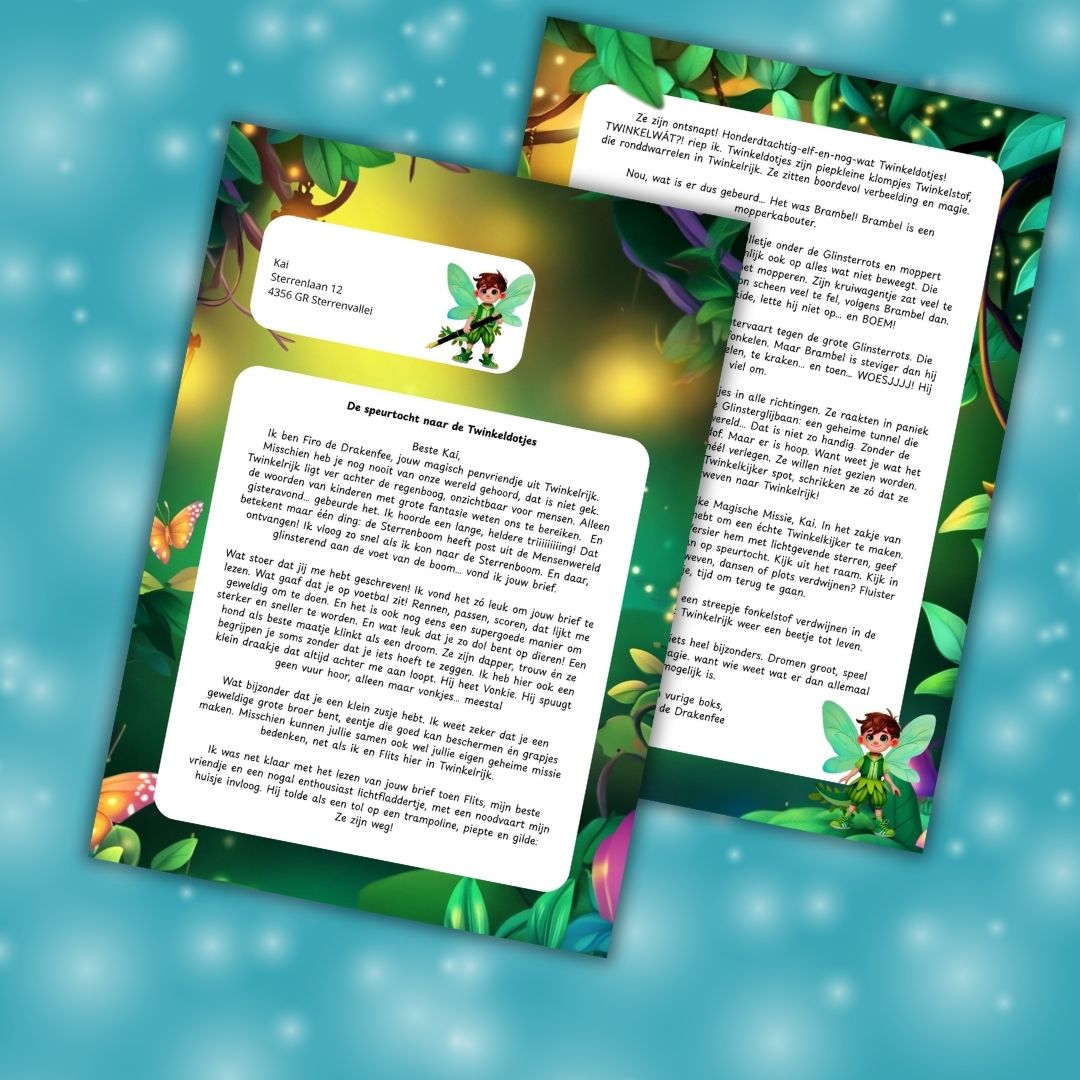 Een luide TRIIIIIIING! galmt door de lucht: de Sterrenboom heeft post uit de mensenwereld ontvangen. En tussen al die sprankelende briefjes… zit die van jouw kind. De naam verschijnt in het blad van de boom, precies op het juiste moment. Want er is een ramp gebeurd: tientallen Twinkeldotjes zijn ontsnapt uit Twinkelrijk en zijn per ongeluk in onze wereld beland!