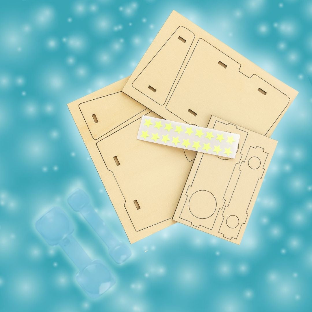 ✨ De opdracht: een houten Twinkelkijker bouwen en versieren met lichtgevende sterren. Daarmee kan jouw kind dingen ontdekken die voor gewone ogen verborgen blijven...