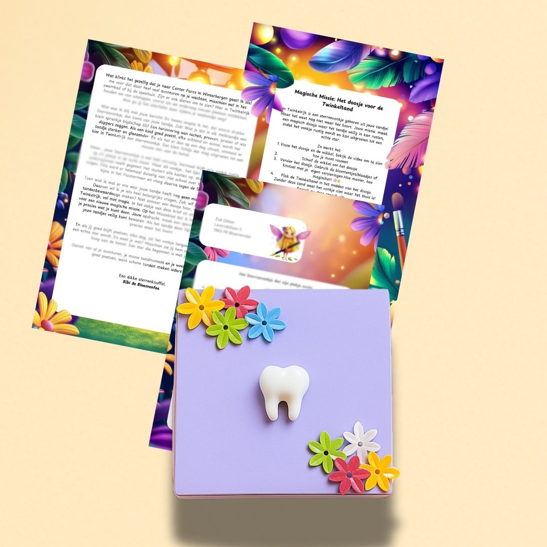 Met dit betoverende pakket ontvangt jouw (klein)kind een échte brief per post, van een penvriendje uit Twinkelrijk: Bibi de Bloemenfee. De brief bevat een verhaal vol verwondering én een compleet knutselsetje om een prachtig tandenbewaardoosje te maken.